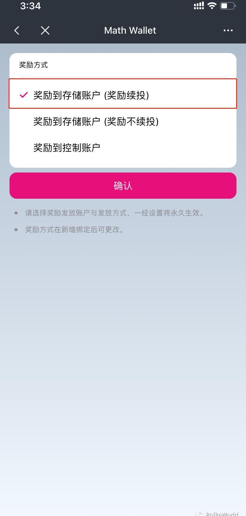 选择奖励获取账户,收益将自动转入对应选择的账户