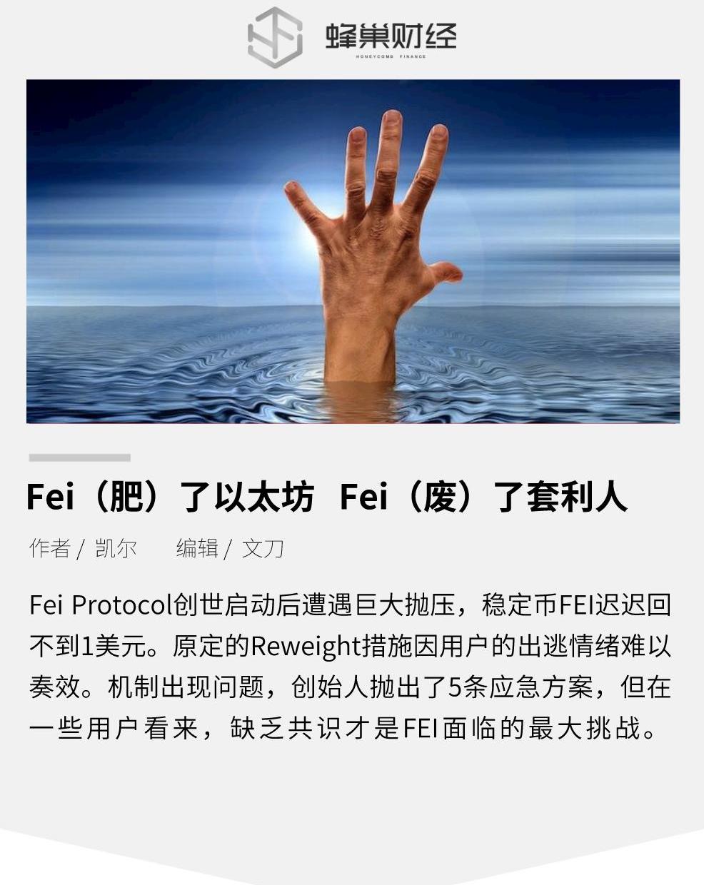 「坐牢的滋味不好受,现在都想把FEI换成主流币,虽然它定位是稳定币,但是我们并不想像持有USDT一样持有它。」有玩家向蜂巢财经吐槽,FEI的表现让人恐慌,现在只想把本金拿回来。