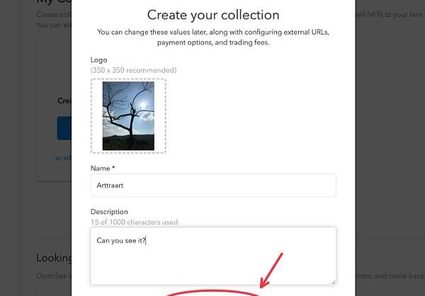 1)在您的OpenSea帐户中,点击创建,然后点击我的收藏集。