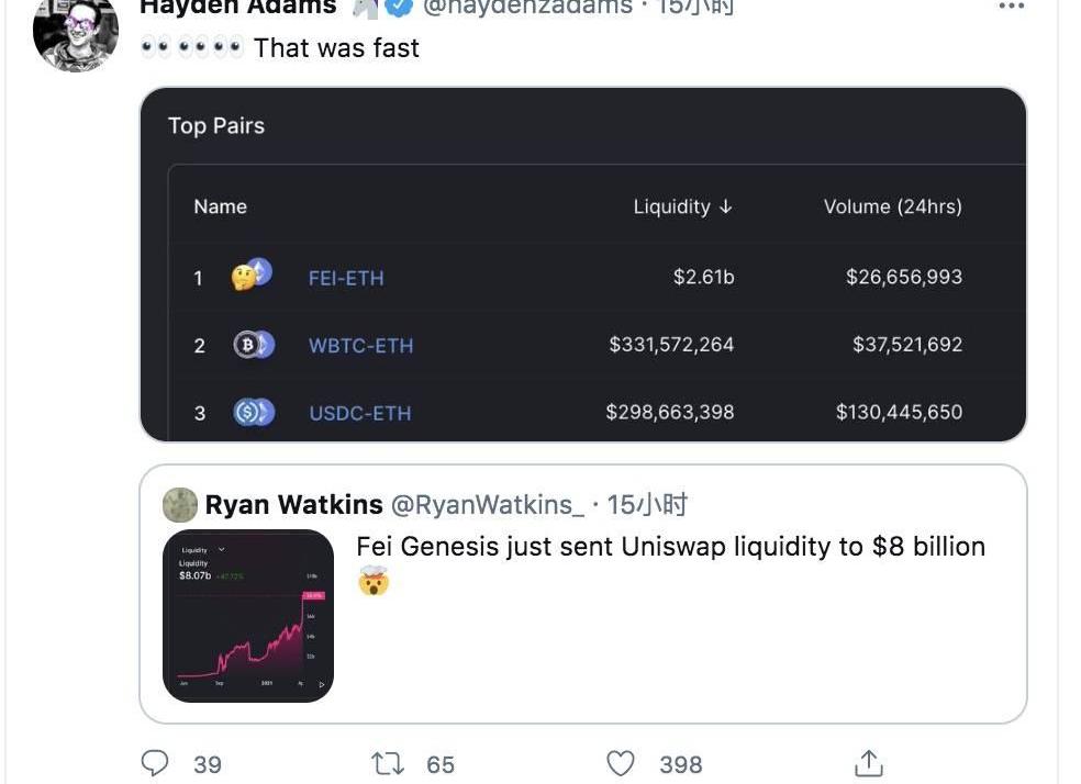 而第三种,则是为Fei协议添加更多的功能,比如参与Fei协议融资的Aave创始人和Compound创始人便有可能会宣布整合消息。