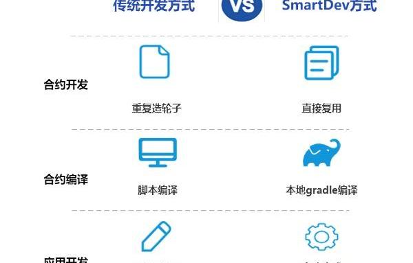 区块链应用开发组件WeBankBlockchain-SmartDev的研发初衷在于打造低代码开发的组件库,全方位助力开发者高效、敏捷地开发区块链应用。WeBankBlockchain-SmartDev包含了一套开放、轻量的开发组件集,覆盖合约的开发、编译、应用开发等环节,开发者可根据自己的情况选择相应开发工具,提升开发效率。