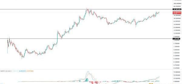 目前仍是上升三角整理状态,昨日下探至趋势线附近开启反弹,后续将迎来变盘,上方短期压力60000美金,下方支撑55000美金,近期耐心等待方向选择,4月14日Coinbase将在纳斯达克上市,后续利好刺激一旦向上突破,新的上涨空间将打开,大方向仍是多头趋势,中长线逢大幅回落,分批低吸,耐心持有。
