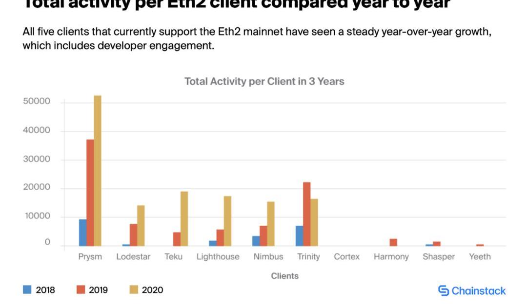 在Chainstack的开发者活动报告中,Prysm占据了相当比例的篇幅。这份报告着重介绍了我们项目的贡献情况与repo发展态势,成功吸引到不少新的外部贡献力量。