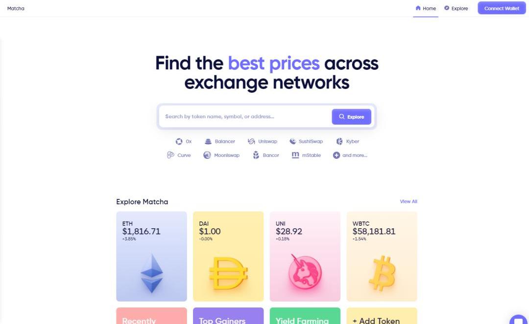 作为功能相对单一的聚合器DEX,与1inch一样,Matcha的使用也较Uniswap、SushiSwap更流畅,并已支持订单簿挂单、多链资产兑换的功能。