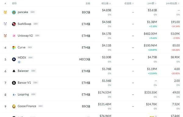 过去24小时去中心化交易所的交易量数据来源:Debank