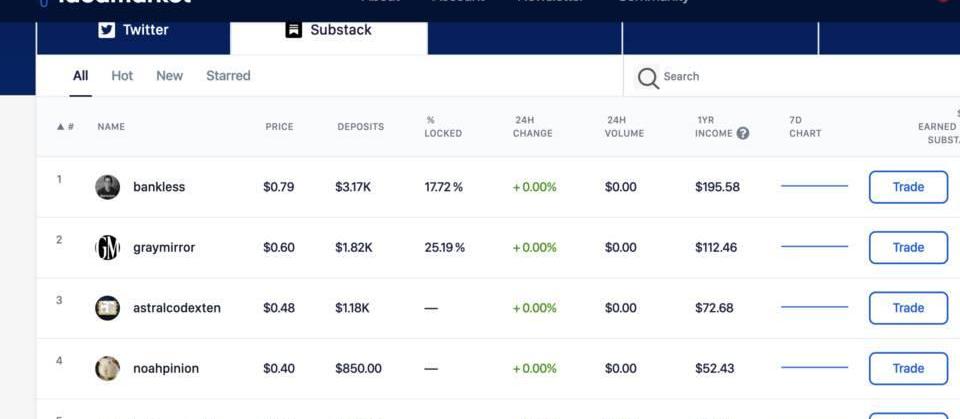 和Bitclout激进的冷启动相比,Ideamarkt更是一种稳步小跑的方式。Ideamarket于2019年首次推出,目前已在以太坊主网上发布。和Bitclout一样,Ideamarkt上的每一个账号都有自己的个人代币,随着购买的代币数量越来越多,其价值就变得更高。
