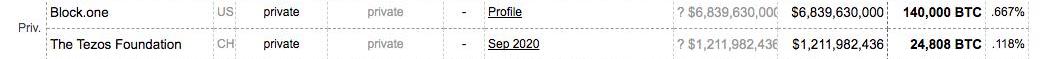 名为“MtGoxK.K.”的私人实体持有141,686个比特币,位居第二。MtGox之后是Block.one,目前拥有14万个BTC,价值67亿美元。