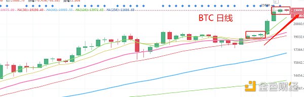操作上,建议继续持币待涨,买进低位品种,只有 BTC 先拉高时候要留意是否会插针或是吸血效应,BTC 率先回落是短线买进机会。BTC 短期支撑位 22300 -22500。