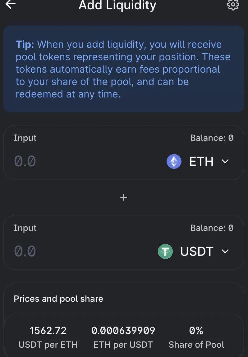 我们将等价值的ETH和USDT添加至Uniswap的流动池,会得到一个LP代币,这个代币代表了我们在该池中的交易费收益权益。