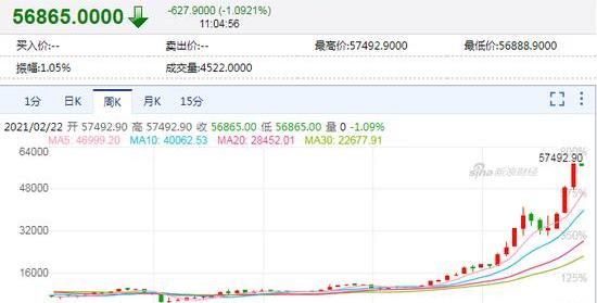 而比特币价格也恰好是在黄金价格达到顶峰开始回落后接过了上涨的接力棒,从2020年10月的11000美元短短4个月涨至如今的57000美元上方,涨幅达到了400%以上。