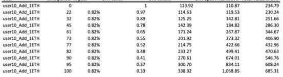 就在Tom之后,其他7个LP在池子里提供流动性,按照AMM提供的公式5的定价,按照公式7获得相应的LP份额,具体如下。