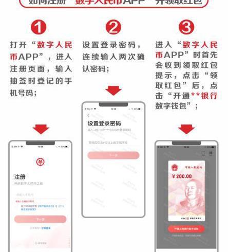 根据相关部门公布的消息,本次红包试点活动的中签者会收到数字人民币APP的下载链接,安装并使用手机号注册。在注册过程中,不需要预先拥有银行账户,但需要在注册时选定具体的运营商开通相应钱包,这意味着“数字人民币”APP并不具有直接支付的功能,仅是一个钱包的综合管理平台,钱包实际的开发和运营由各运营商负责,各运营商可以选择在钱包的基础功能之上增加个性化服务。