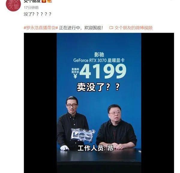 罗永浩直播间显卡上架后瞬间抢光