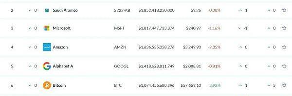 AssetDash数据显示,截至2021年2月21日19时,比特币现价约为5.76万美元,市值达1.07万亿美元,升至全球资产市值排名第6位,位居腾讯之前。同时,在CoinMarketCap收录的加密资产数量为8532,总市值来到了1.7万亿美元。