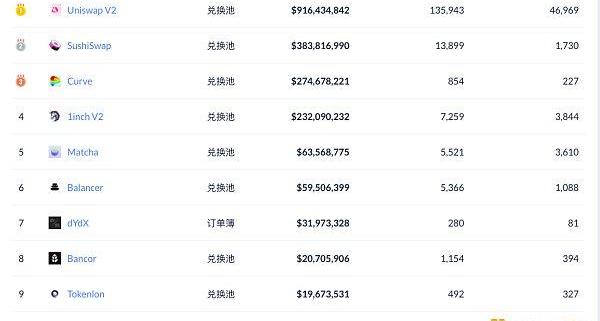 2.过去24小时去中心化交易所的交易量:20.5亿美元