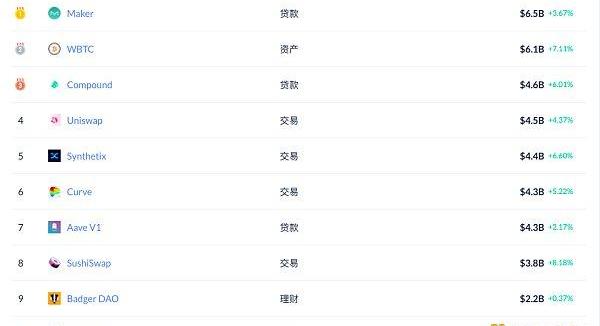 DeFi项目锁定资产前十排名及锁仓量,数据来源:Debank
