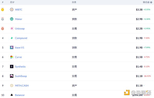 DeFi项目锁定资产前十排名及锁仓量,数据来源:Debank