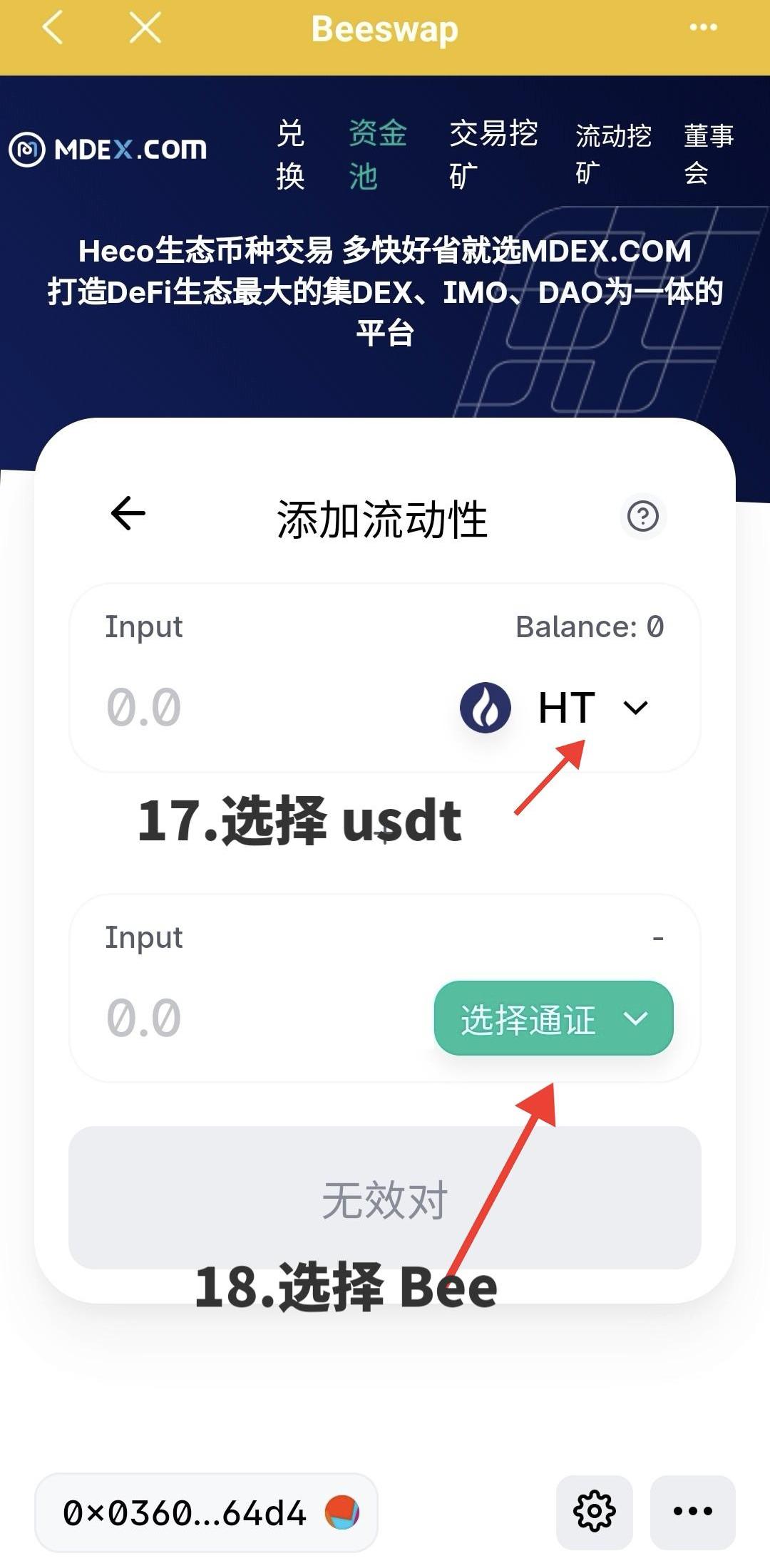 在MDEX中获取BEE-USDT提供流动池