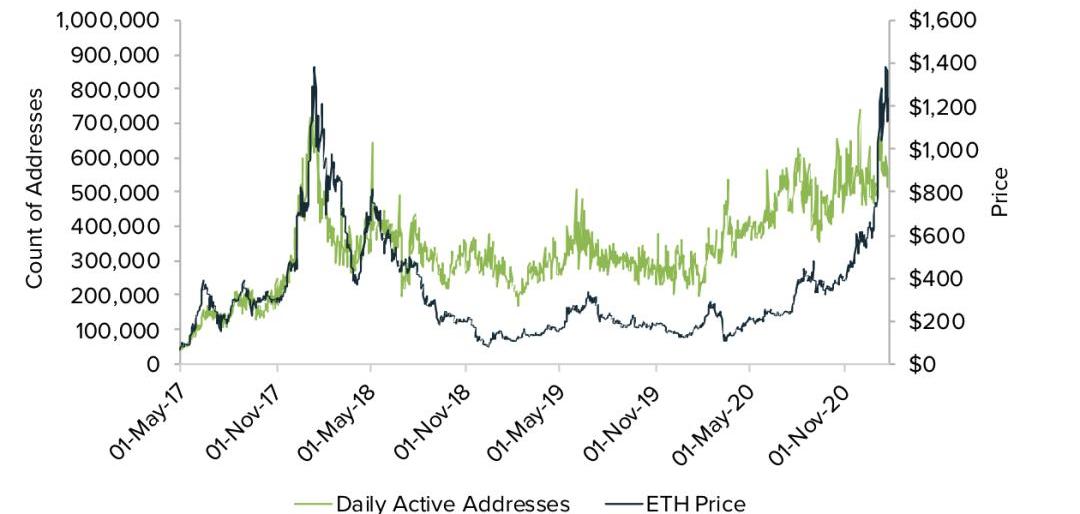 仅今年年初以来,以太坊价格几乎翻番。以太坊价格的强劲表现有诸多推动因素,这些因素相互依存,DeFi热点不断,机构资金入场,整体加密市场的回暖等不一而足。