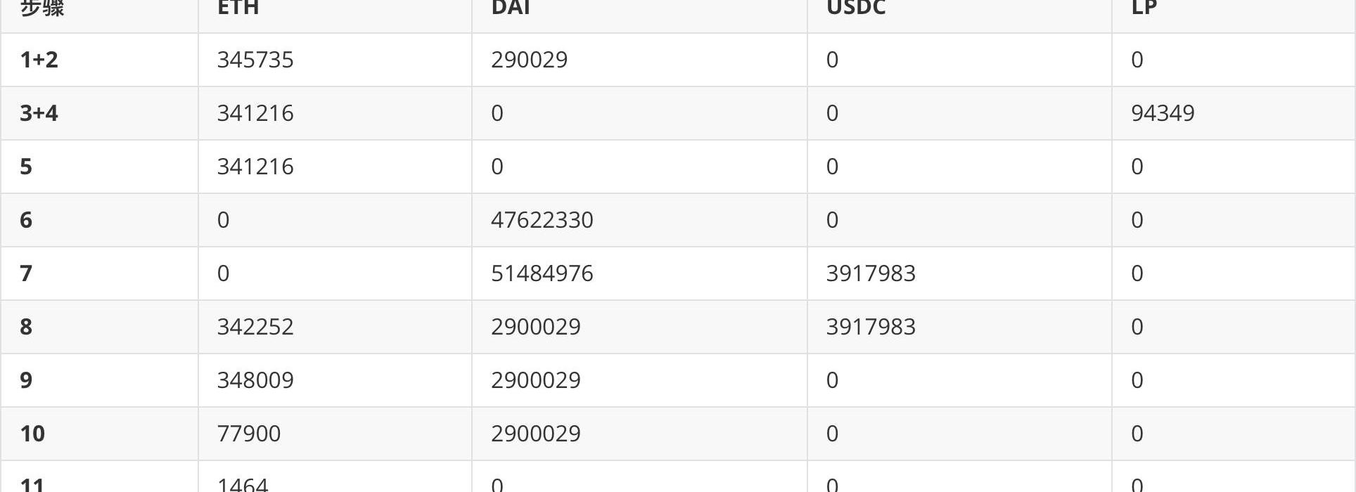 每个步骤之后黑客地址上的币种余额变化如下表所示: