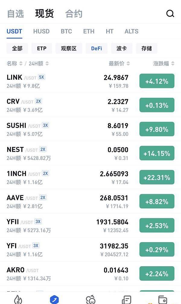 根据火币全球站数据显示,在ETH创下新高的同时,一些DeFi项目也创下了新高。诸如,Link达到25.78USDT,AAVE达到289USDT。
