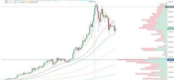 1月7日,比特币首次突破40000美元整数关口,随后在1月8日出现阶段性顶部,在40000美元上方时间仅有4天,随后比特币及加密货币整体市场遭遇重挫。在4天内比特币从最高点回落超28%。
