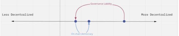 事实是,去中心化是艰巨且昂贵的。去中心化往往以短期效率为代价,这种联系是绝对的。所以,如果你有一个减少治理决策的设计,但你的第一冲动就是因为其昂贵或缓慢而无法工作。