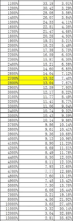 由于上线初期MDX价格处于热炒期,价格波动比较大,所以APY可能在1000%-10000%之间浮动。为了方便大家直接对照本文得到回本周期,我在此画出一个表格,各位直接参考不同的APY对应的不同回本周期即可。