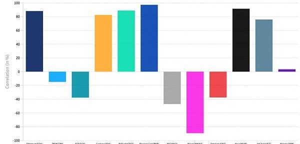 有趣的是,最有前景的区块链代币,如Ethereum、Cardano、Polkadot、Binance和NEAR与比特币的相关性最高。