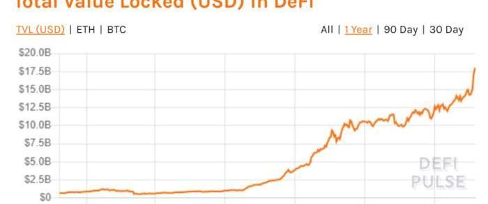 2020年是DeFi高歌猛进的一年。这些dApp中的总锁仓价值从2020年初的6亿美元增至年底的150亿美元,增长了24倍。