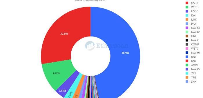在使用率上比稳定币低一级的是DEX代币。前20中有4种DEX代币,总占比达1.3%。