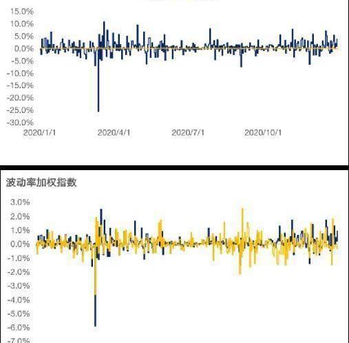 波动率差=波动率加权组合的波动率-市值加权组合的波动率