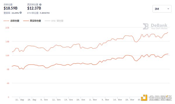 DeFi项目锁定资产前十排名及锁仓量,数据来源:Debank