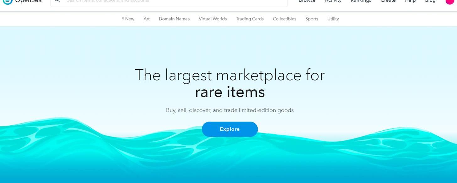 OpenSea是以太坊最重要的NFT中心之一。这个平台可以很简单地产出自己的NFT,或者在二级市场上交易其他项目的NFT。