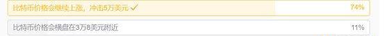 而针对难度上调后后市看法,金色财经调查显示,用户对于比特币价格继续上涨的预期占比达74%。