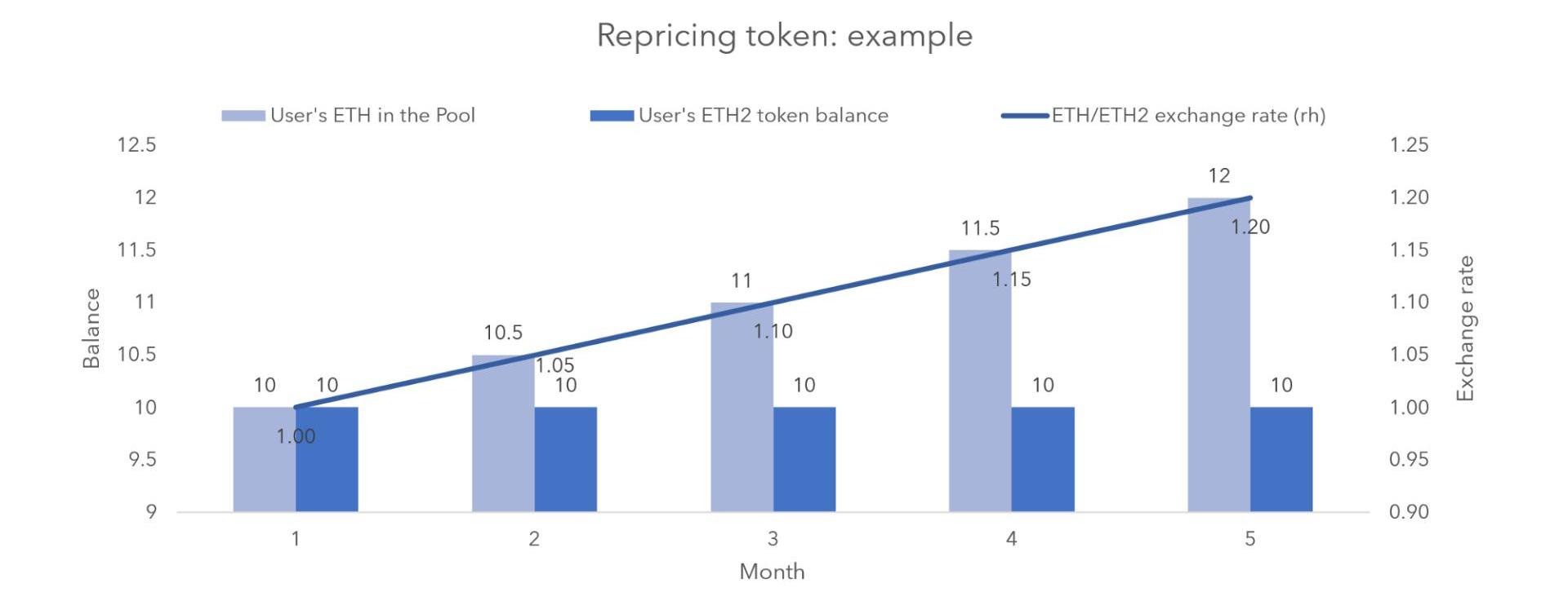 存款和奖励以太坊代币的总和一直等于池中以太坊的数量;两个代币的兑换率保持为1