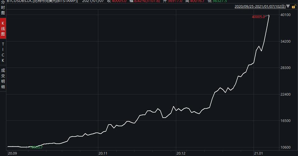 值得注意的是,去年12月16日,比特币才刚刚突破2万美元,随后在今年1月2日突破3万美元,短短不到一月比特币价格已经翻倍。