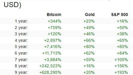 根据casebitcoin.com最新数据显示,比特币在过去十年的表现胜过一切,远超黄金、标普500。比特币在过去十年中增长了11057290%,而黄金回报率为38%,如下图所示: