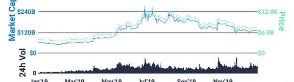 2019年,比特币的价格及交易量经历复甦,成为当年表现最好的资产之一。在2018年11月跌破3500美元后,比特币在2019年7月重新攀升至12,000美元以上。然而,其价格未能维持上升动力,并在年末跌至7000美元。