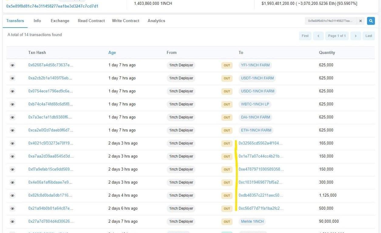 Luciano:这个地址一共收到了363000个1inch