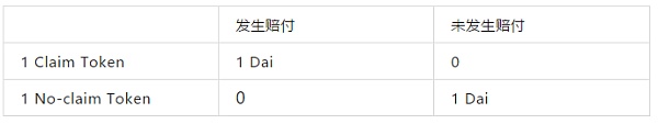 Cover 在组织形式类似于 CDS。对每一个保险项目,用户每抵押 1 单位抵押品(目前仅支持 Dai),就同时获得 1 个 Claim Token 和 1 个 No-claim Token: