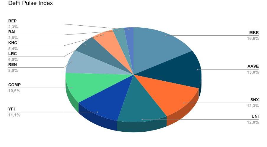 目前的代币组合:MKR(~16.58%),AAVE(~13.04%),SNX(~12.25%),UNI(~11.99%),YFI(~11.11%),COMP(~10.61%),REN(~7.96%),LRC(~6.04%),KNC(~5.35%),BAL(~2.79%),REP(~2.27%)目前资金管理规模:~$14.7Mtoken价格:~$66