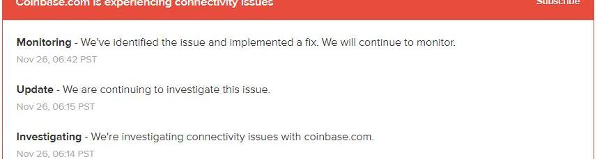 Coinbase状态页面当前显示以下内容: