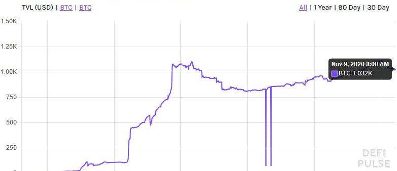 与此同时,同样作为支付手段的闪电网络,却一直处于十分尴尬的发展阶段,网络内质押的BTC上数量一直在1000枚上下徘徊,远不及DeFi。
