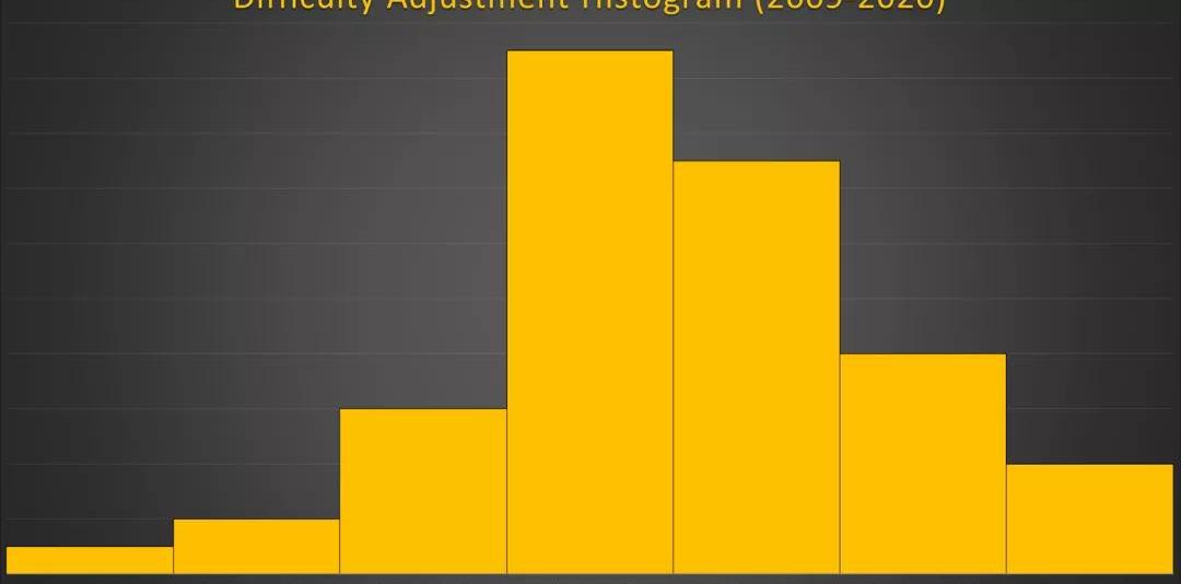 那么这些季节性难度和哈希率的波动是如何堆叠到整个比特币网络区块历史上的呢?下列直方图或许为我们提供了一些启示:
