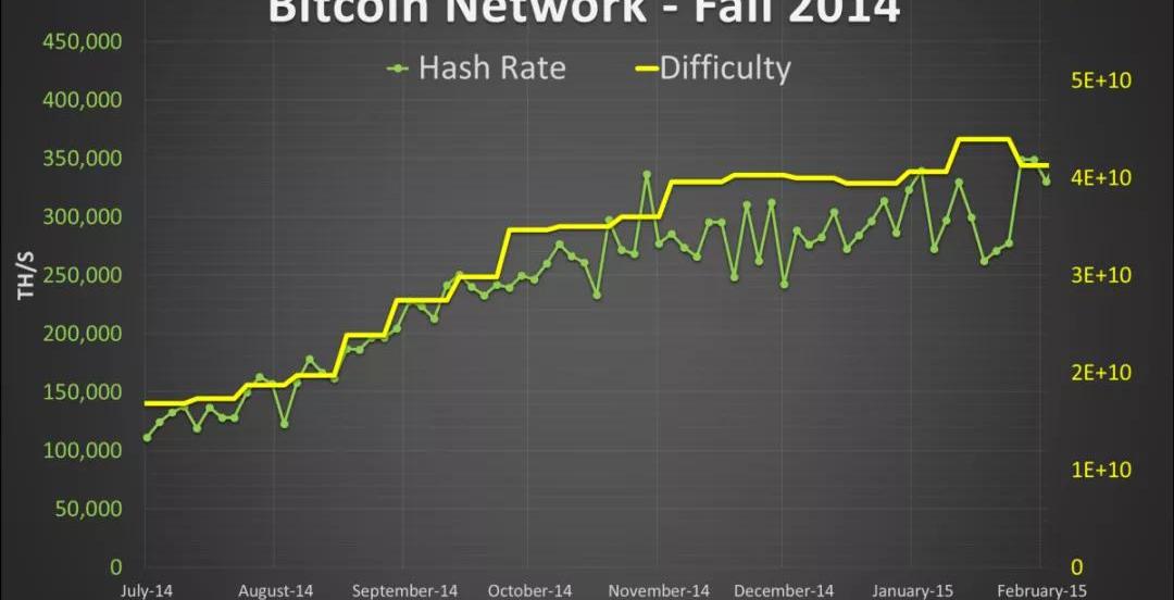 2016年在10月份前后出现了小幅的难度调整。同时,网络哈希率和难易度的增长速度在相同的时间框架内减缓,但是数值仍是上涨的。