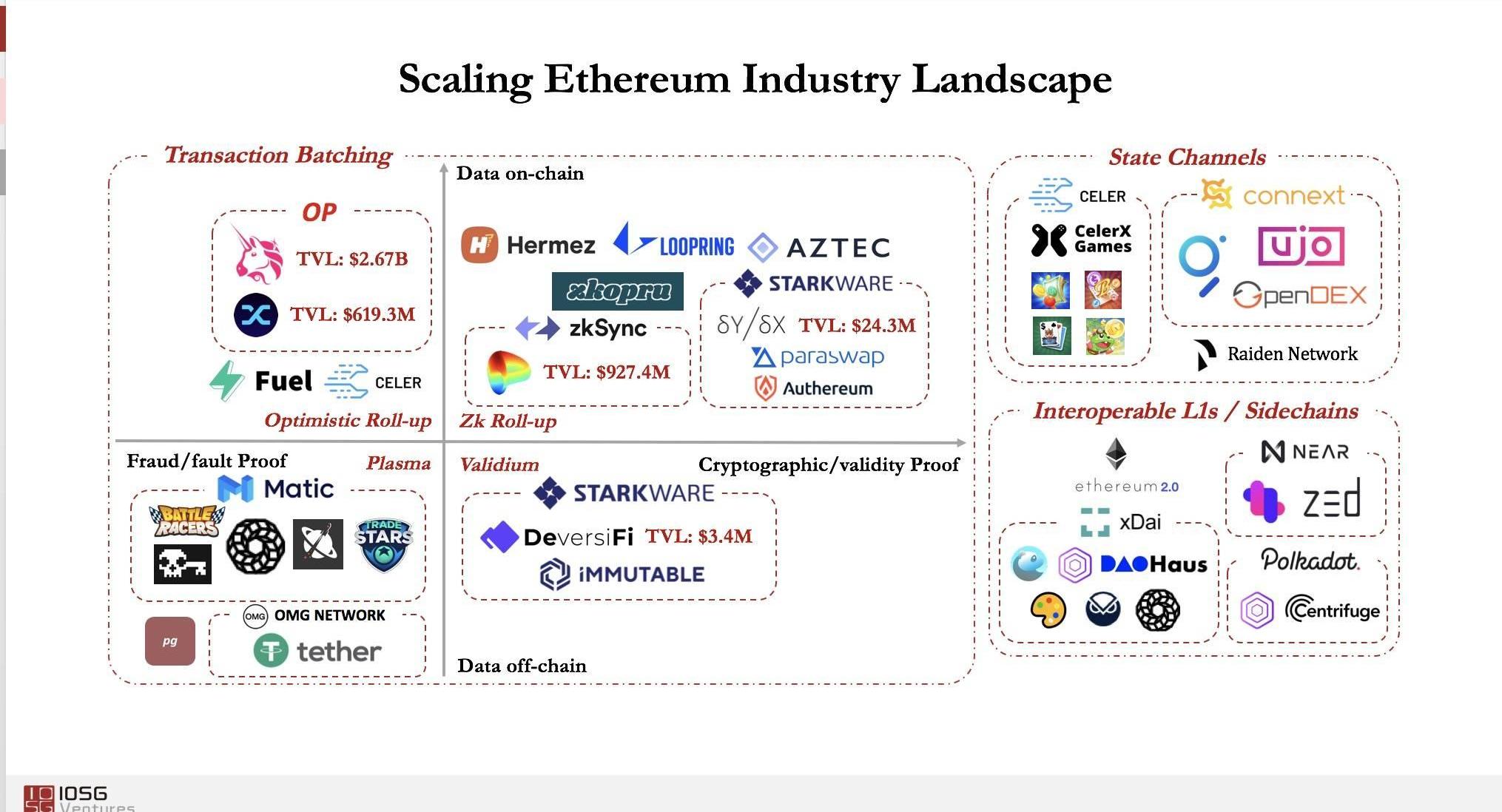 关于Layer2,我们可以看到过去三四年时间以太坊出现的数次拥堵,从2017年的加密猫到今年的流动性挖矿,因此怎样给以太坊扩容?有非常多的Layer2的解决方案,包括零知识证明方案更多用于交易和DeFi智能合约里面,当然还有其他跨链解决方案。