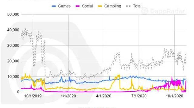 11月5日,DappRadar发布2020年10月DApp生态系统报告。