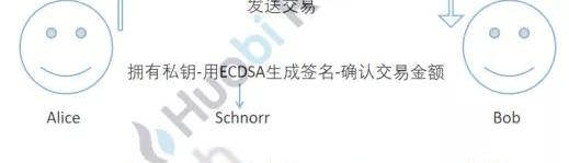 Schnorr本质是一种密码学签名技术,我们可以简单理解为,在比特币系统中,Schnorr将是ECDSA的替代升级方案。ECDSA的全称是椭圆曲线数字签名算法。它在比特币中的作用我们的并不陌生,我们在比特币网络中的每一次签名都用到了ECDSA技术。比如说,Alice想发送一笔交易,必须要让矿工确认只有Alice拥有私钥,拥有这笔资产的处置权。因此Alice需要用ECDSA前去生成一个独一无二且无法被修改的签名,以证明Alice拥有私钥,同时确认交易部分的具体金额。而等到Schnorr正式激活后,这项工作将由Schnorr接替。本过程见图2.