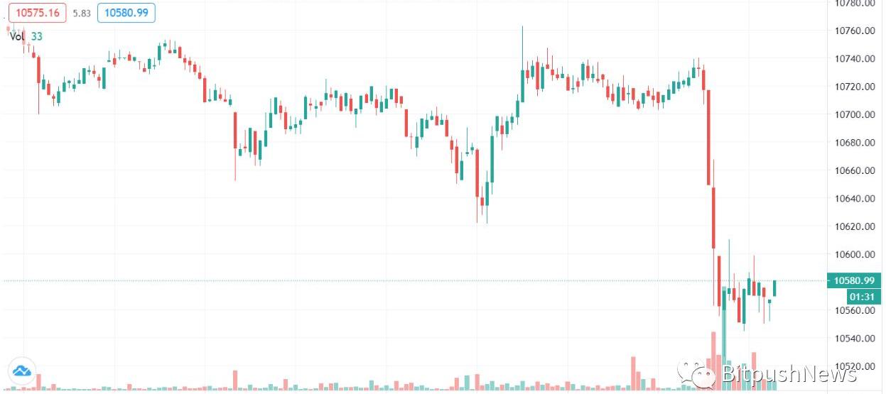 据比推数据,市值最高的加密货币比特币在其发布推特前持续在10700美元上方震荡,大有继续上行再次挑战11000美元之势。不过在这之后风云突变,比特币在30分钟内接连跌破10700美元和10600美元,之后在10500美元上方震荡。